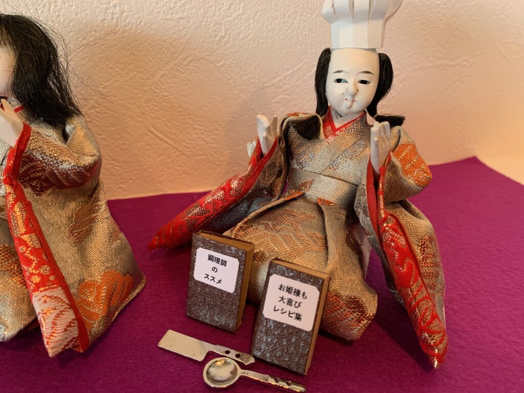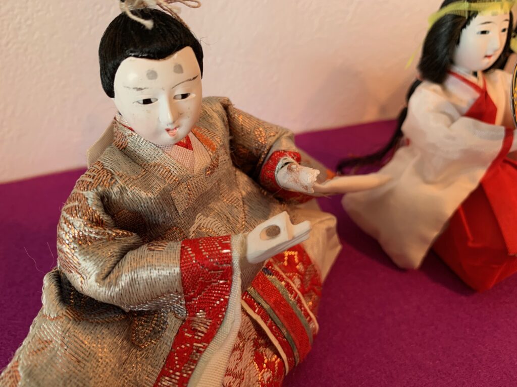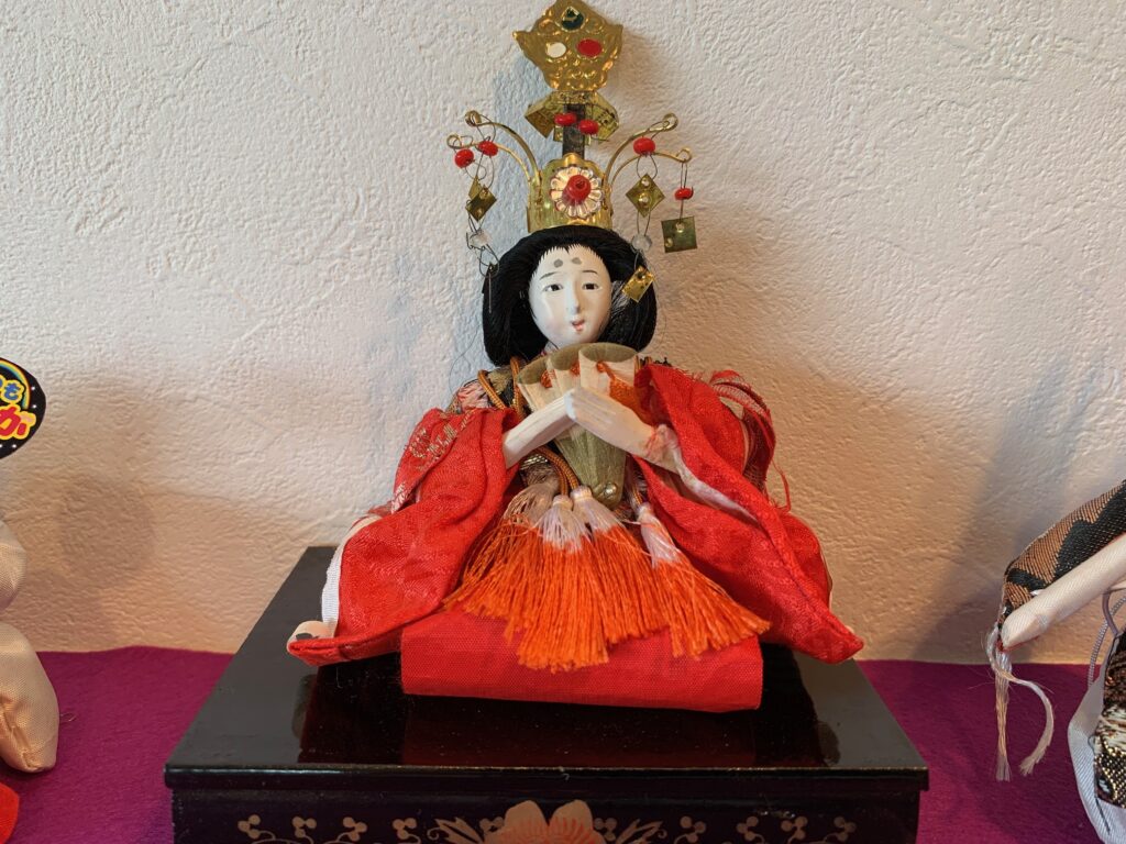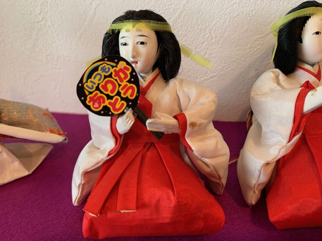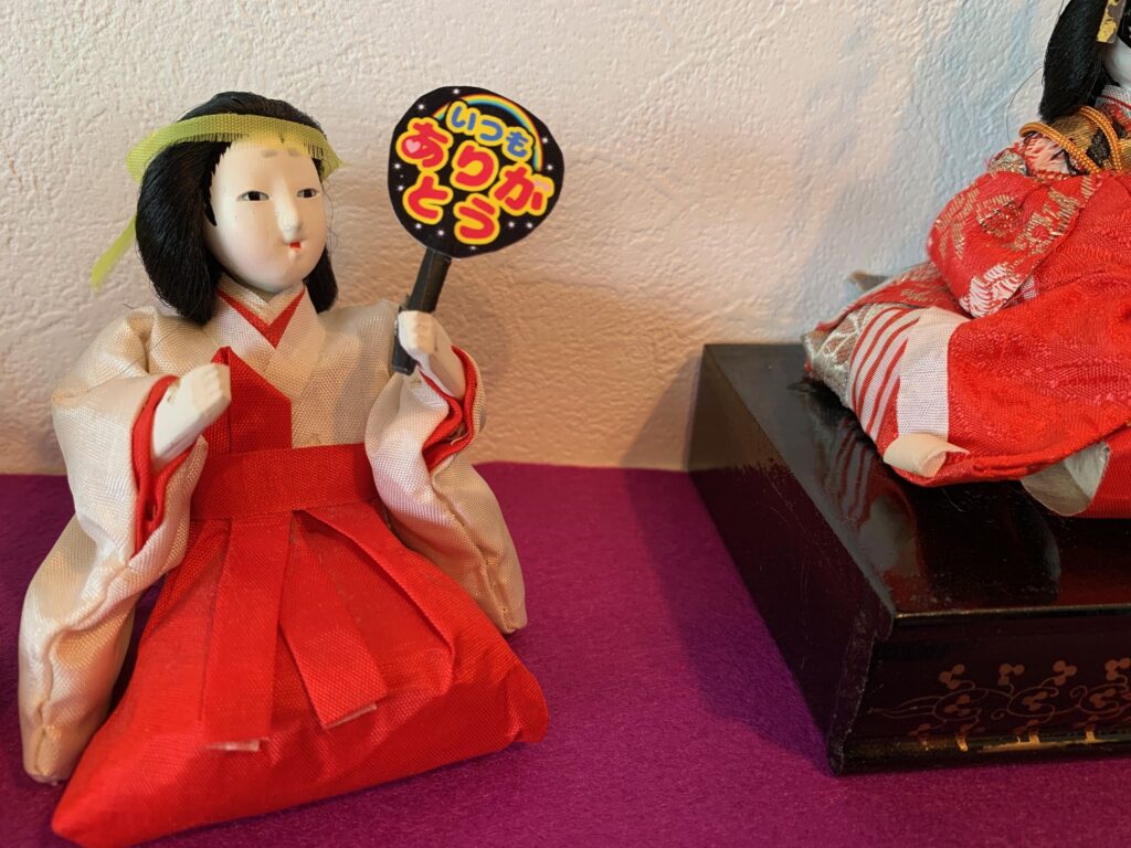 お雛様劇場:59年前のお雛様を季節に合わせて、待合室に飾っています