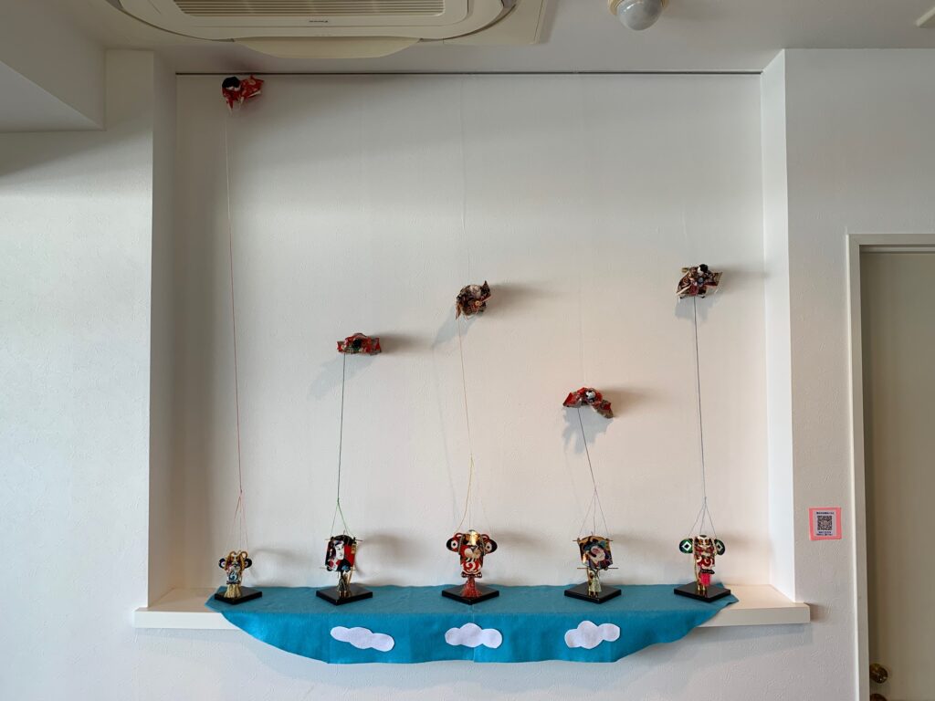 お雛様劇場:59年前のお雛様を季節に合わせて、待合室に飾っています