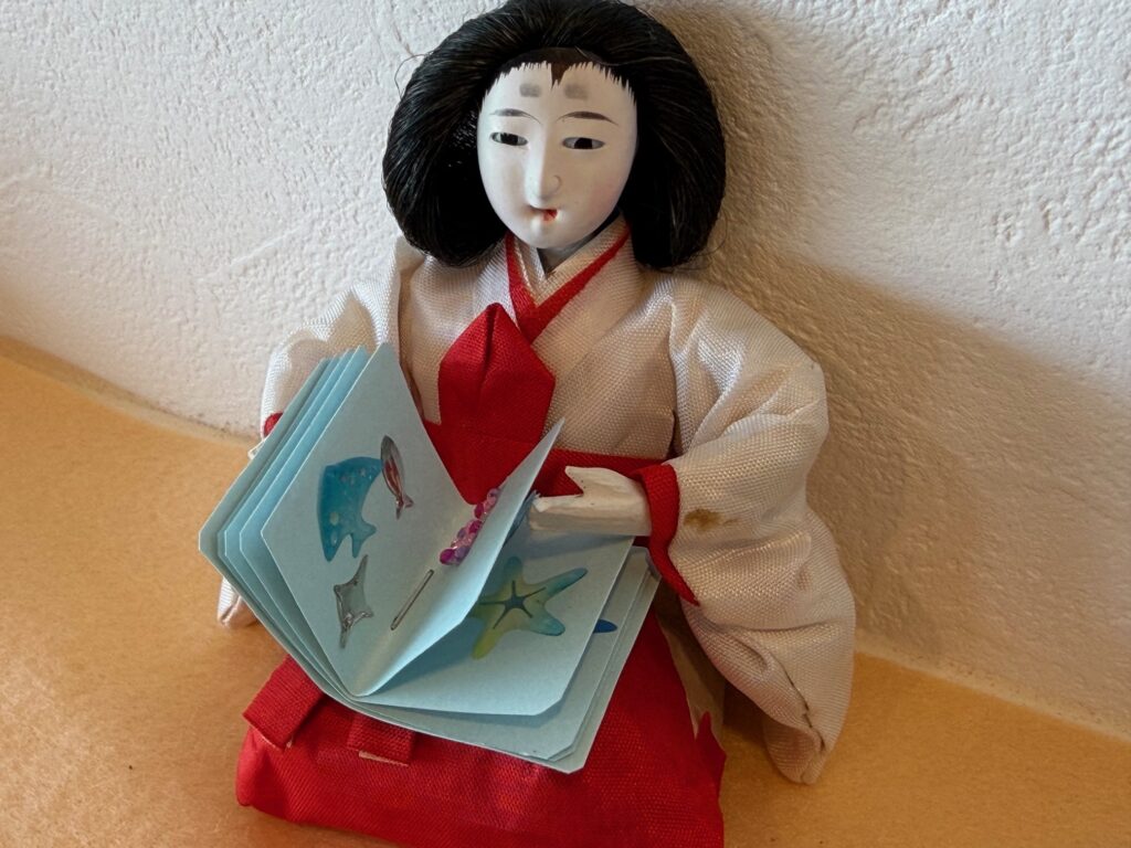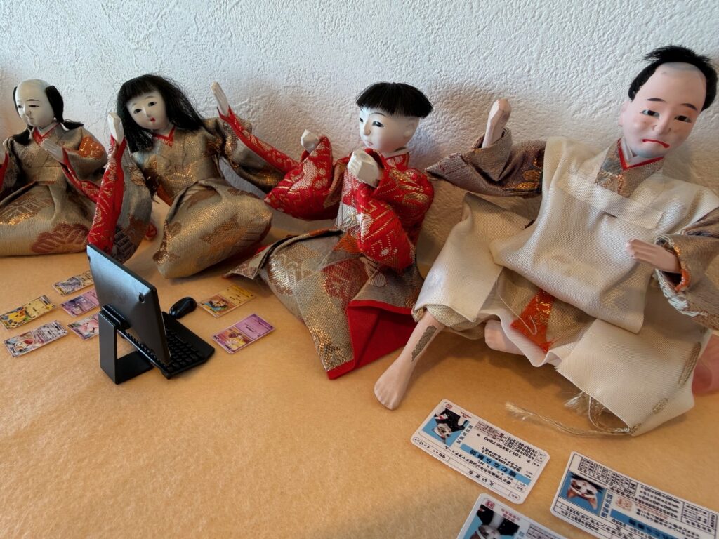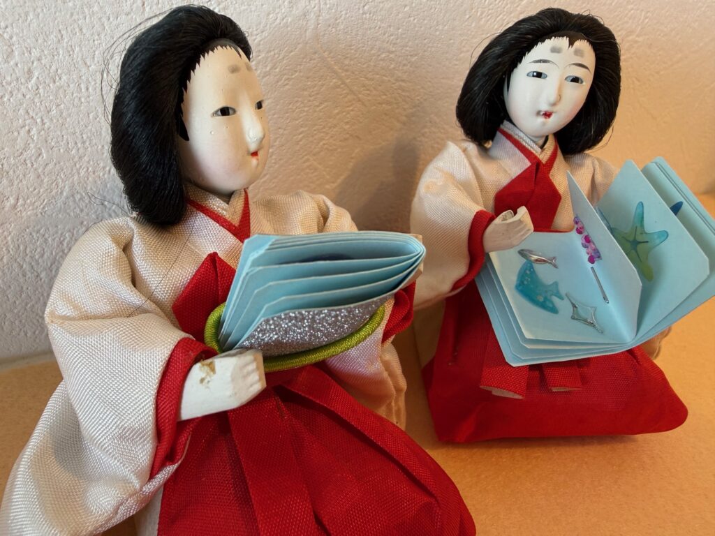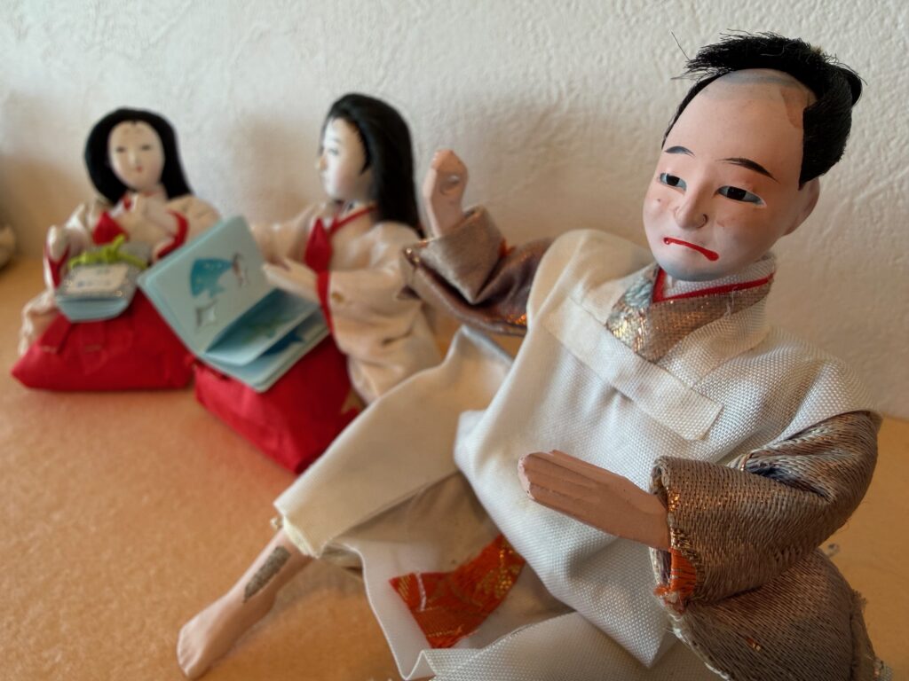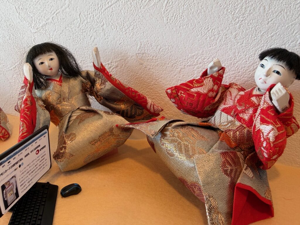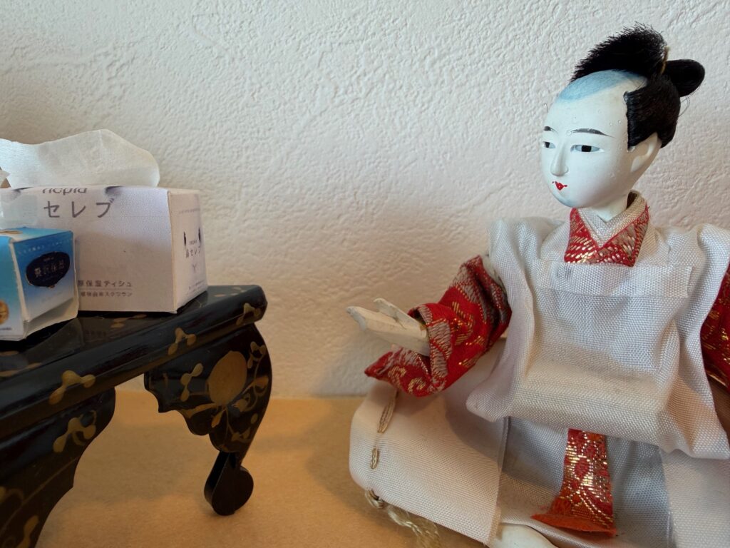 お雛様劇場:59年前のお雛様を季節に合わせて、待合室に飾っています