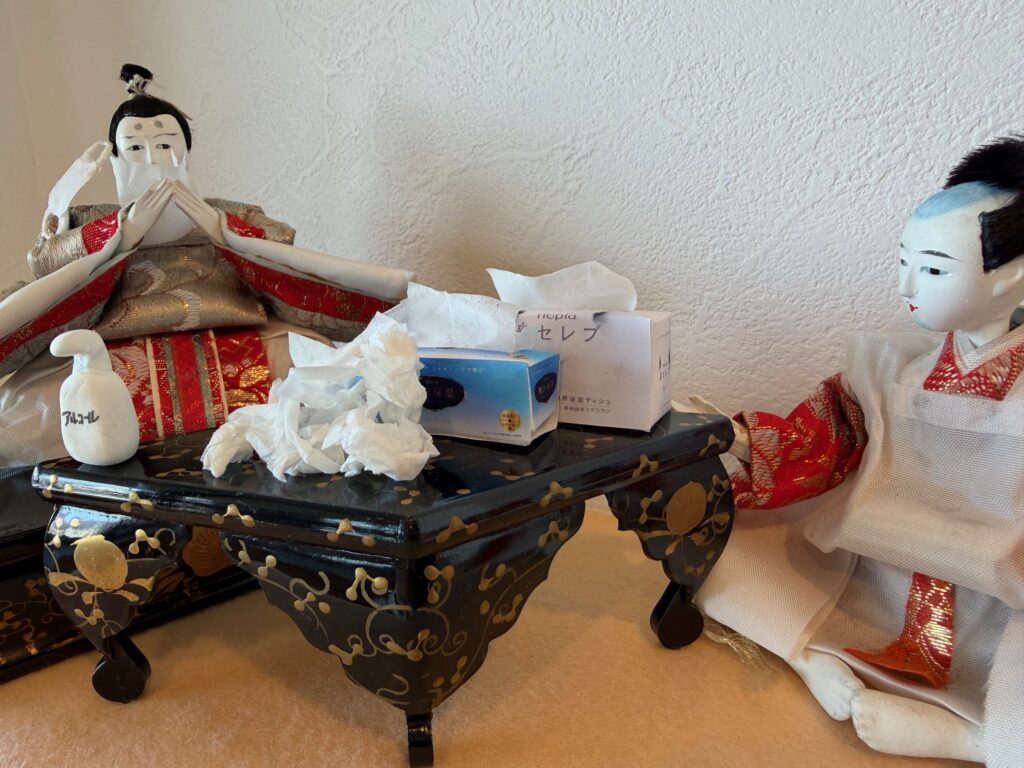今年、花粉症デビューをしたお殿様は、ティッシュが手放せません。
