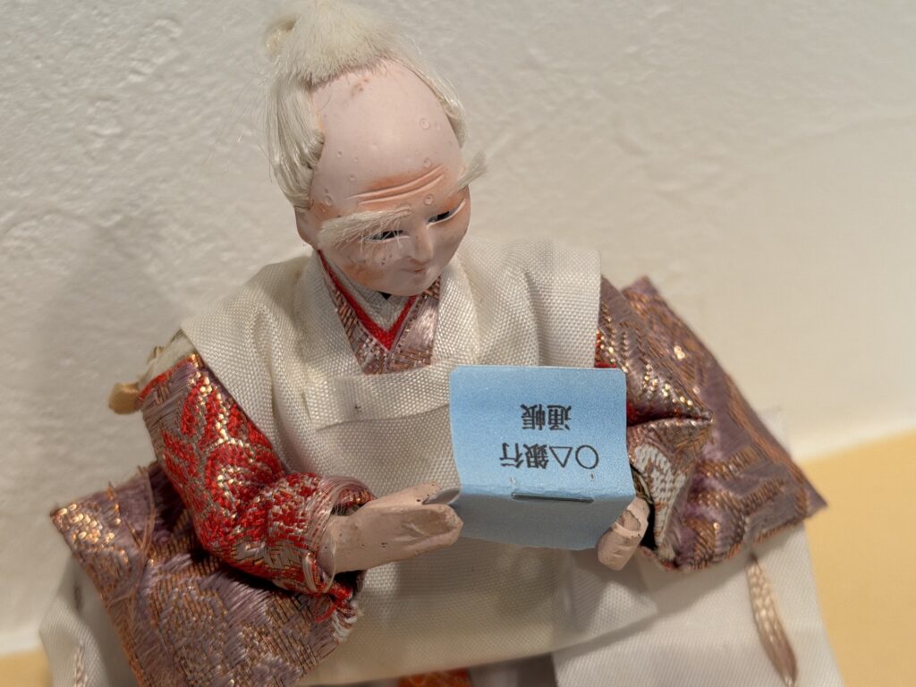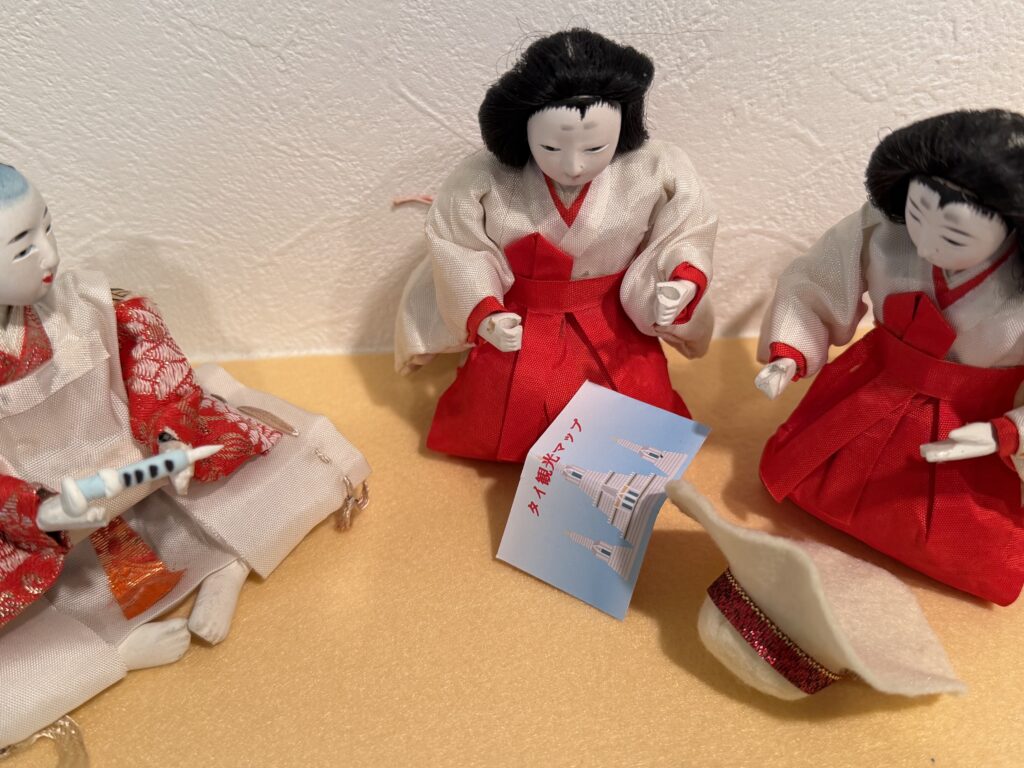 お雛様劇場:59年前のお雛様を季節に合わせて、待合室に飾っています