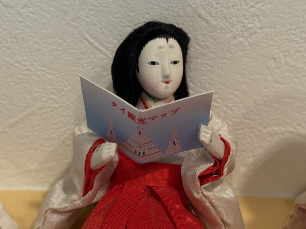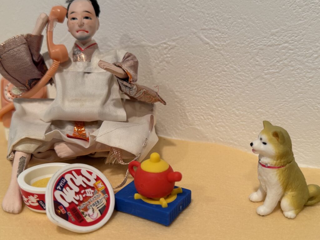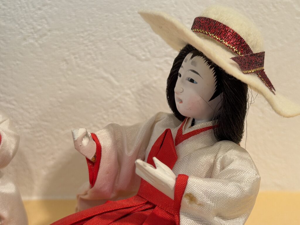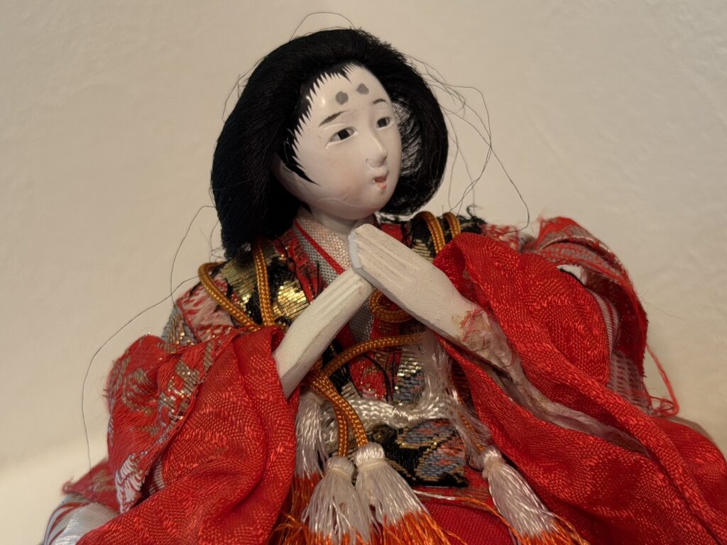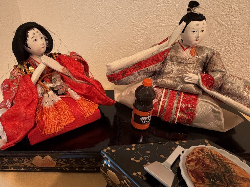 寂しそうに見つめるお雛様と、バツが悪そうに、そっと目をそらすお殿様。